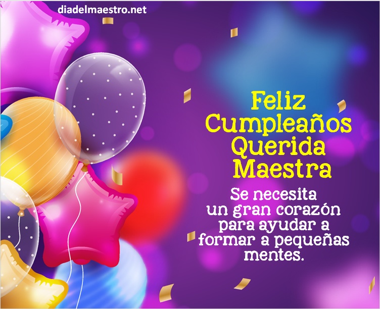 Hermosos mensajes de amor y amistad para el cumple tu maestra. Las mejores Postales de cumpleaños para tu maestra. En nuestra galería tienes una amplia variedad de estilos y diseños de Imágenes con frases de felicitaciones. Bonitos textos y pensamientos para dedicar a tu maestra querido. Contamos con la Mejor colección de tarjetas de cumpleaños para tu maestra digitales con frases creativas y originales para imprimir o compartir online gratis. como alumnos debemos honrar a nuestros docentes por su contribución a nuestra educación. Les traemos algunas buenas frases, deseos, citas y mensajes para enviar a sus mentores en su feliz cumple. Además, puedes usarlos para enviarlo a traves de WhatsApp, Facebook e Instagram.