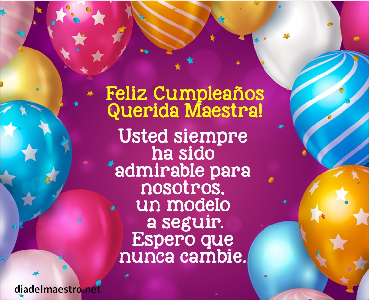2 ¡Feliz cumpleaños querida maestra! Usted siempre ha sido admirable para nosotros, un modelo a seguir. Espero que nunca cambie.