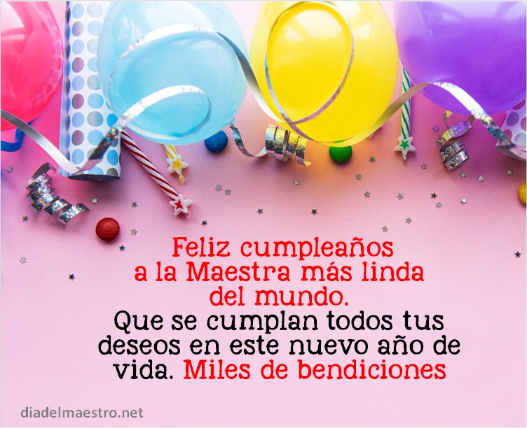8 Feliz cumpleaños a la maestra más linda del mundo. Que se cumplan todos tus deseos en este nuevo año de vida. Miles de bendiciones.
